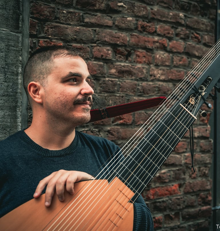 Initially a classical guitarist, he travelled to Belgium to further his studies with Greek guitarist Antigoni Goni. He always felt a special drive to play in groups, and chamber music was a subject he pursued in every form he could. In the last year of his guitar degree studies, a series of acquaintances pushed him further into the world of early music, and he fell in love with the lute, the principles of basso continuo, and he finally devoted himself to his passion for performing with other musicians through the medium of Early Music and culturally informed performance practices on the lute, beginning a new life with the instrument in 2019.