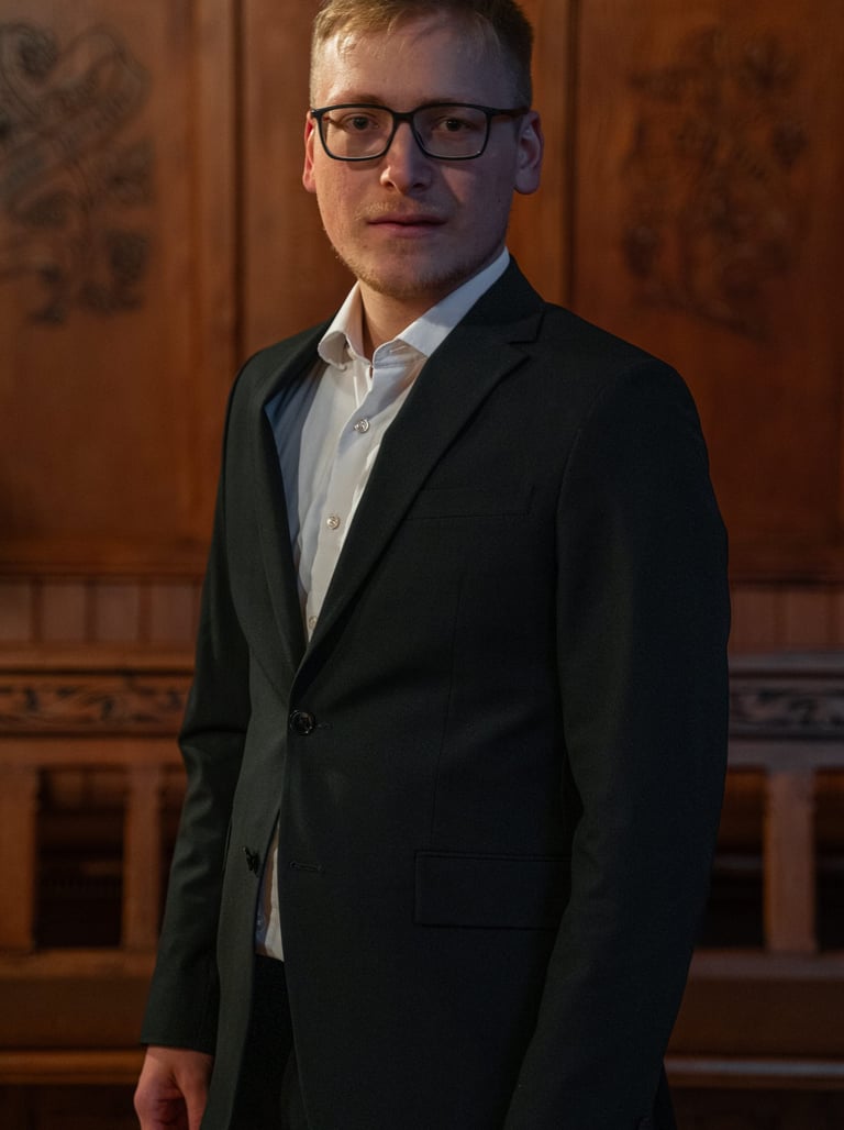 Born in 1999, Martin grew up in Limburg (Lahn), Germany. His musical path began at the Limburg Cathedral Boys' Choir. He has been studying philosophy at the University of Stuttgart since 2018. Since 2019, he has been pursuing vocal studies at the HMDK Stuttgart in the class of Prof. Teru Yoshihara. In 2025, he completed his bachelor's degree and is now studying for his master's degree. In addition to his musical and academic pursuits, he works as a student assistant at the Institute of Philosophy at the University of Stuttgart and the Chair of Philosophy and Aesthetics at the AbK Stuttgart with Prof. Daniel Martin Feige.