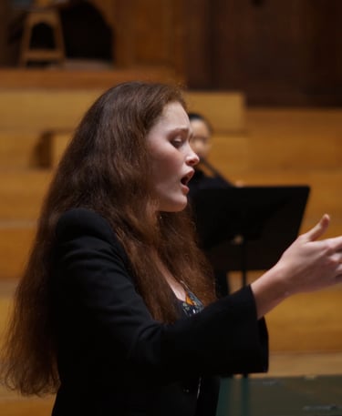 Après avoir passé son enfance dans des chœurs parisiens à monter sur les scènes de sa capitale (Théâtre du Châtelet, Philharmonie de Paris, Théâtre du Soleil, etc), la soprano Madeleine Treilhou décide de poursuivre ses études au Conservatoire Royal de Bruxelles dans la classe de Nicolas Achten. Formée en Chant Lyrique ainsi qu’en Chant HIP (Historically Informed Practice) elle termine cette année son bachelier dans la capitale Belge.